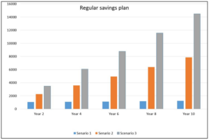 The chart below shows the result of the above scenarios after ten years.